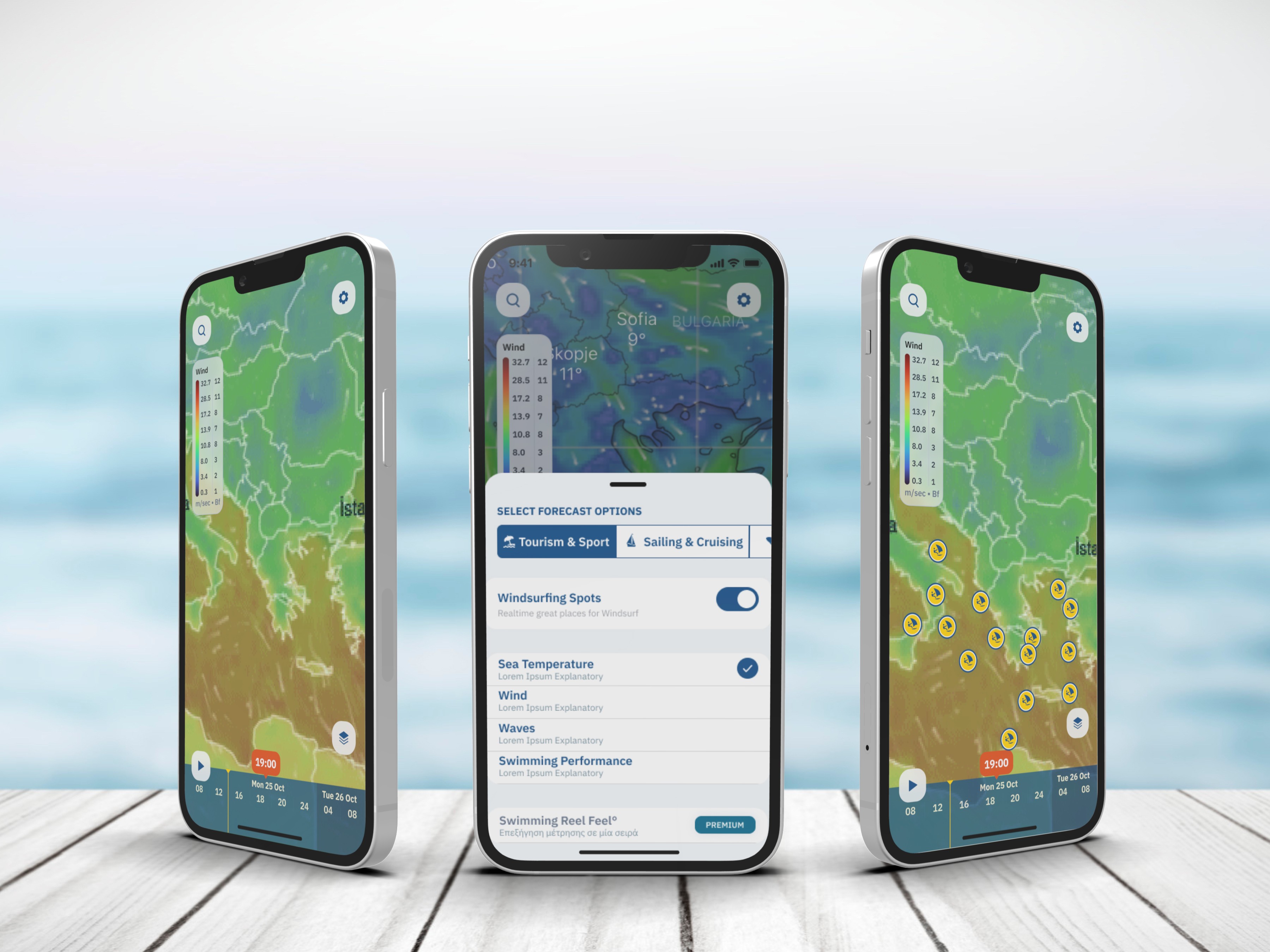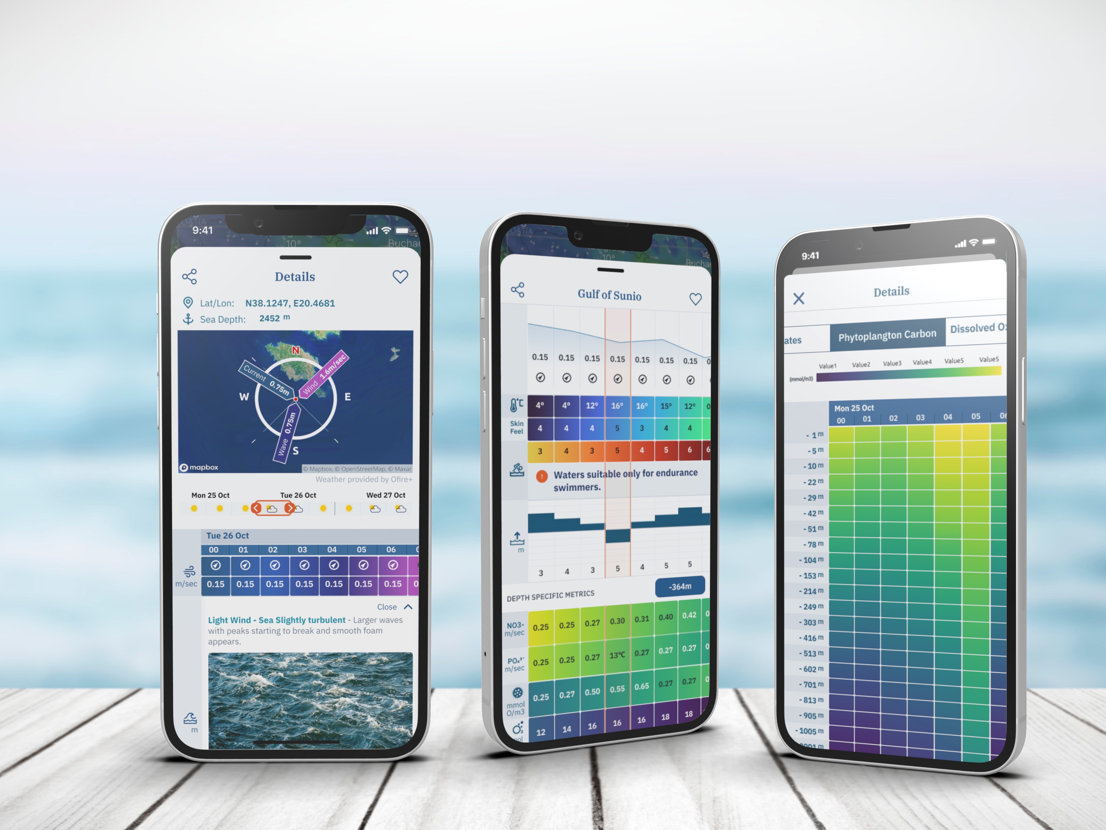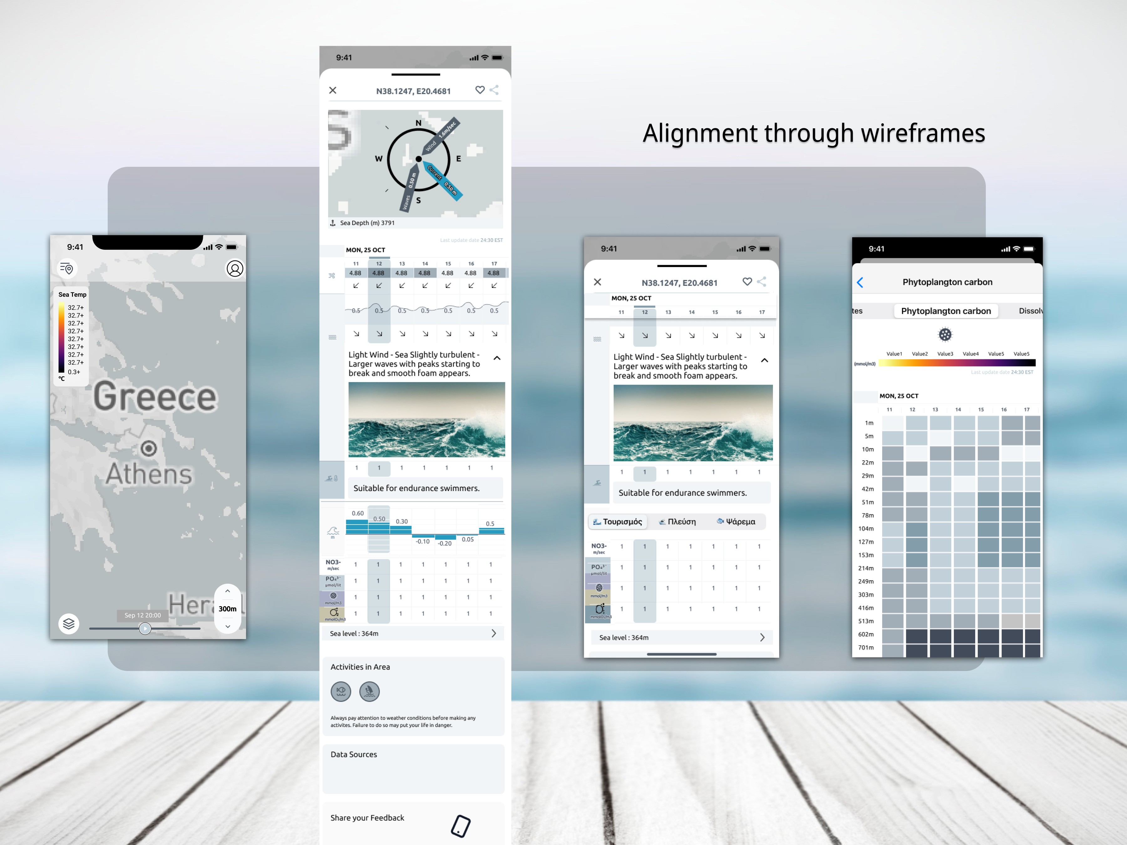 Sealoc aimed to provide professional users with detailed metrics across multiple depth levels. The target audiences included fishermen, fish farming experts, and skippers in the Mediterranean region, each requiring real-time data for their operations.